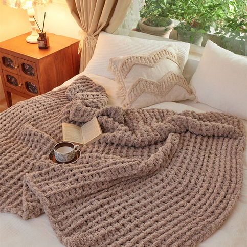 Northern Knit Throw/Blanket, Minimalist Luxury Plaid Throw Blanket Camel Gray
