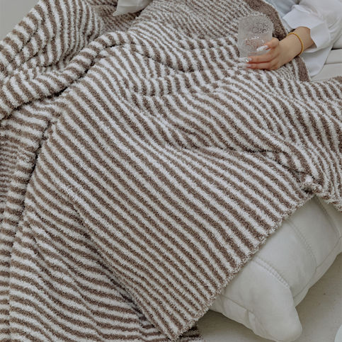 Warm Half-Plush Striped Throw �C Yarn Blanket for Sofa & Home